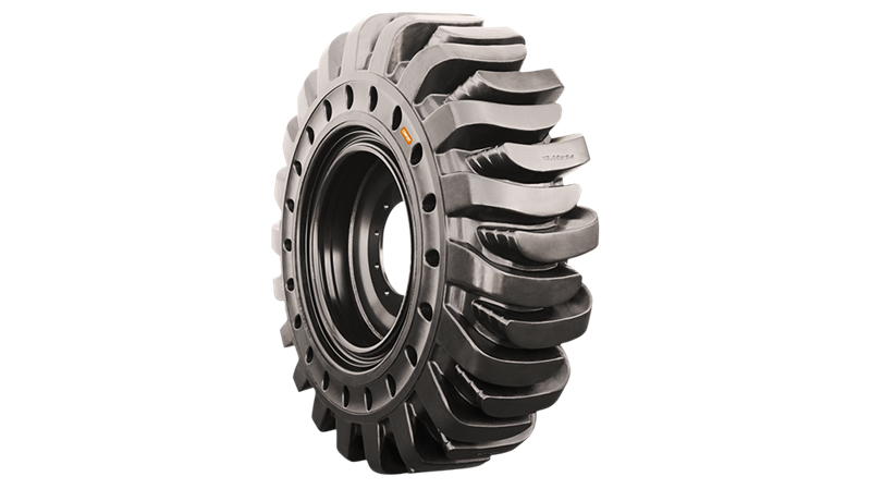 Featuring a wide footprint, Trelleborg’s COMFORT line tires provide better traction compared to standard solid tires. The wide, flat tread design affords excellent stability and extended operating hours, while a deep lug tread design gives three times more wear than a pneumatic tire.