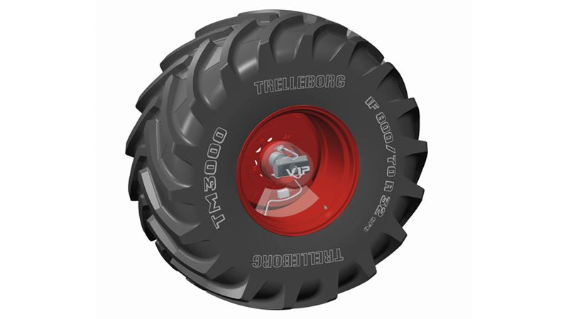 特瑞堡VIP™智能胎压调节系统集成在轮辋上,由一组传感器组成。系统实时监测负载、压力和温度等若干参数,中央处理器控制压缩机和阀门,实时调节胎压。无论在田间还是在公路,特瑞堡VIP™智能胎压调节系统都可以根据工况调节胎压,自动实现公路上充气或在田间排气。