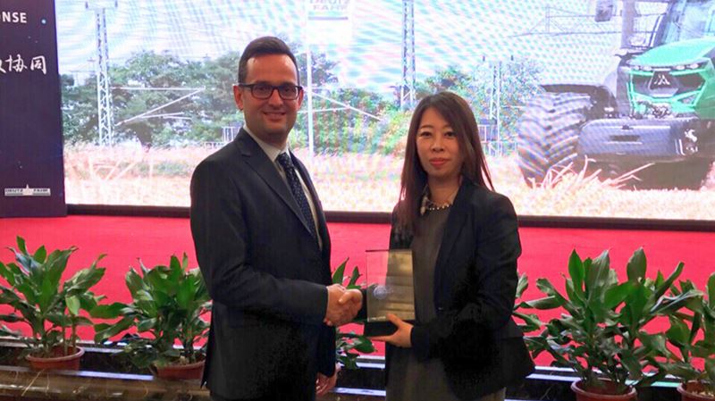 道依茨法尔总经理Aurelio Noto回顾了道依茨法尔在过去5年取得的成绩,并宣布了未来业务战略规划。颁奖典礼上,道依茨法尔质量技术技术总监Andrea Borso先生为特瑞堡车轮系统农林轮胎事业群营销总监骆湘新女士颁发了“2016年度优秀供应商”奖杯。