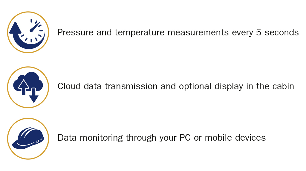 保持合适胎压有助于减少机器停机时间并降低事故风险。特瑞堡 TMPS 是一种基于传感器的监测系统,可实时监控轮胎压力和温度。